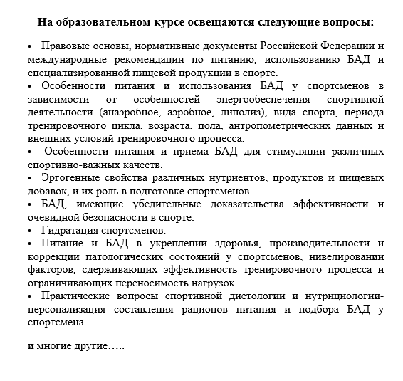 Анонс курса "Нутритивная поддержка спортсменов. Питание и БАД - сопровождение", преподаватель - Е.А. Гаврилова